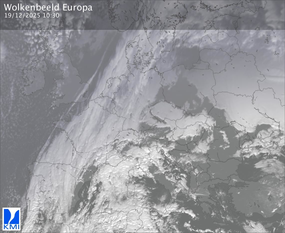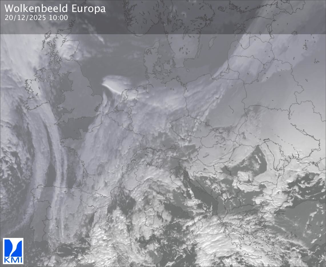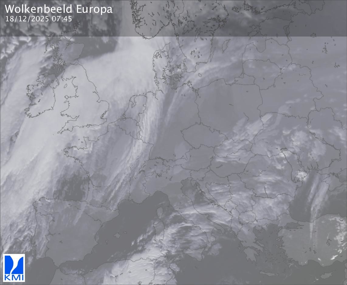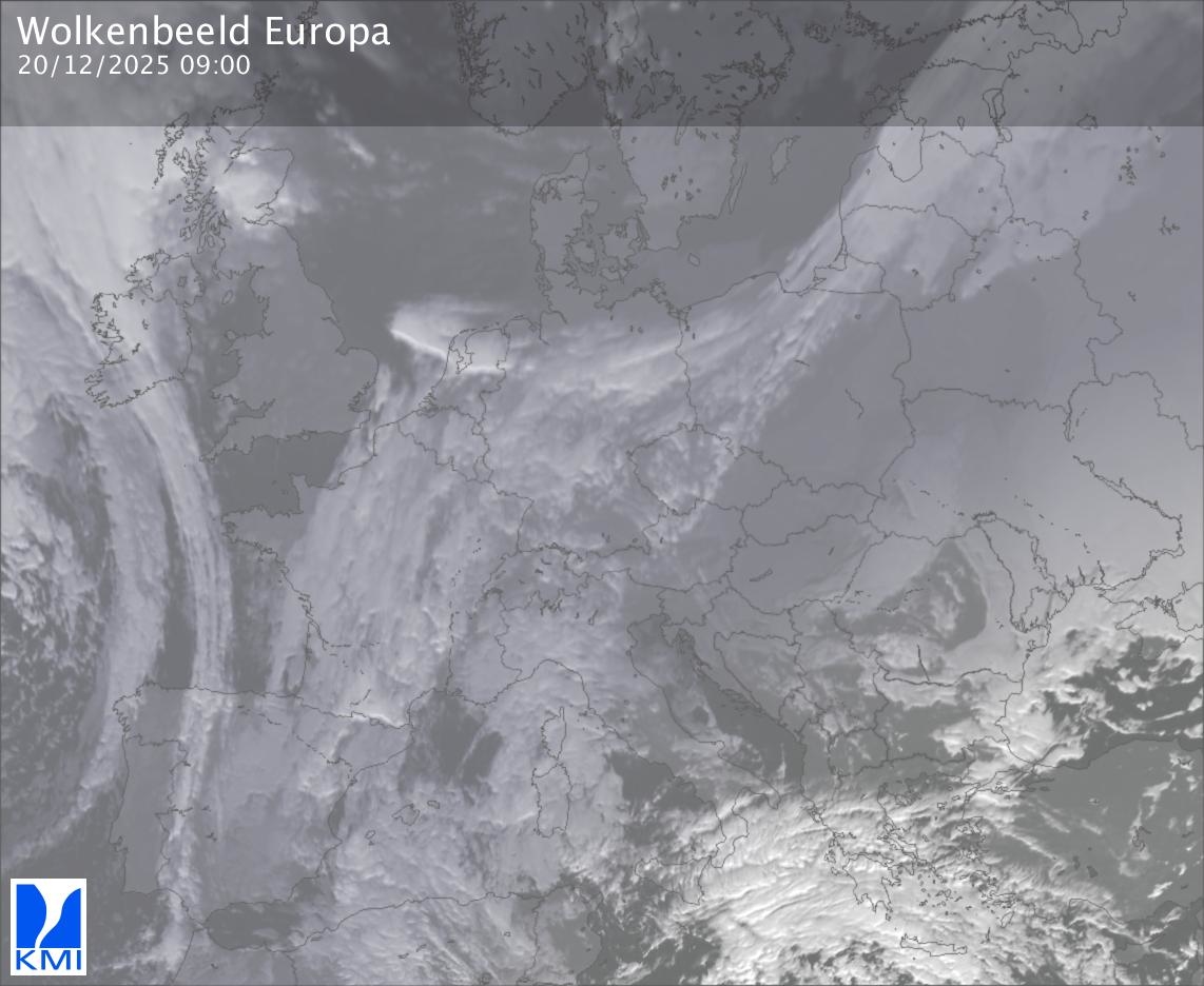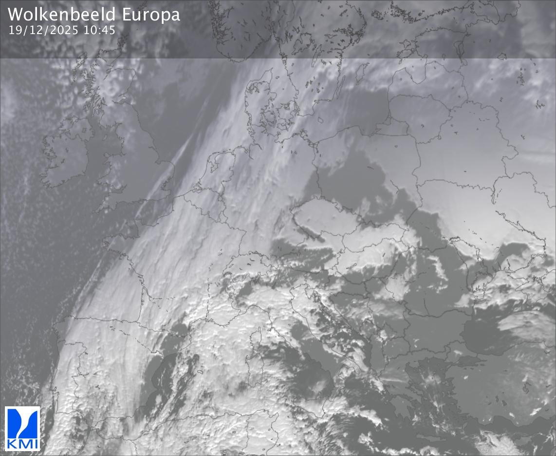 Wolkenbeelden van Europa: een combinatie uit het zichtbare (dag) en infrarode (nacht) spectrum.