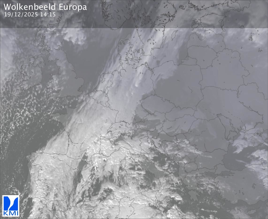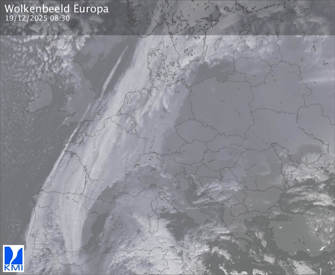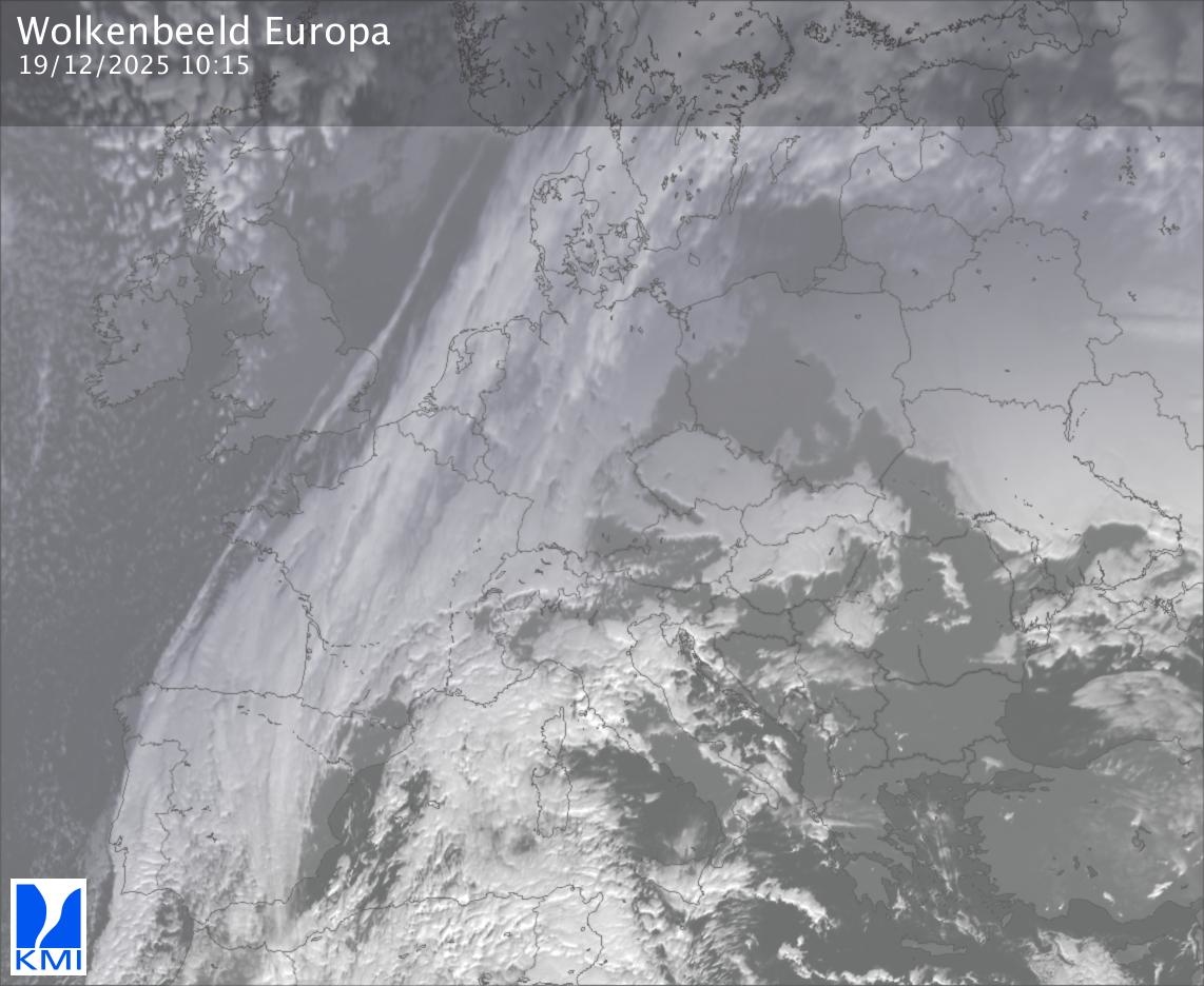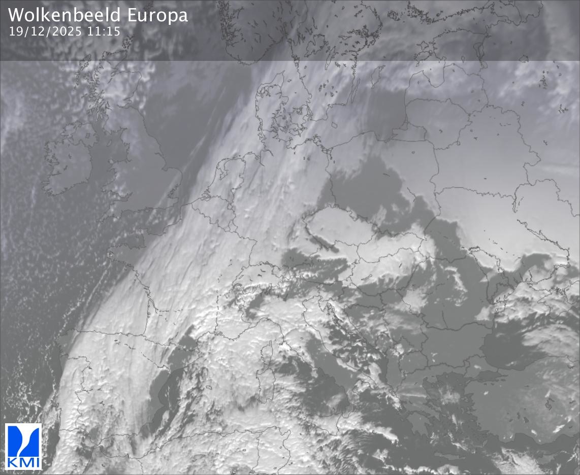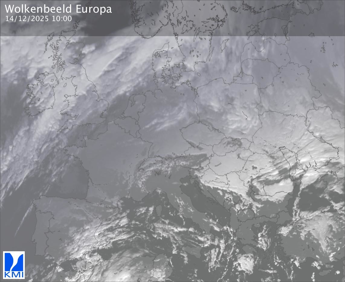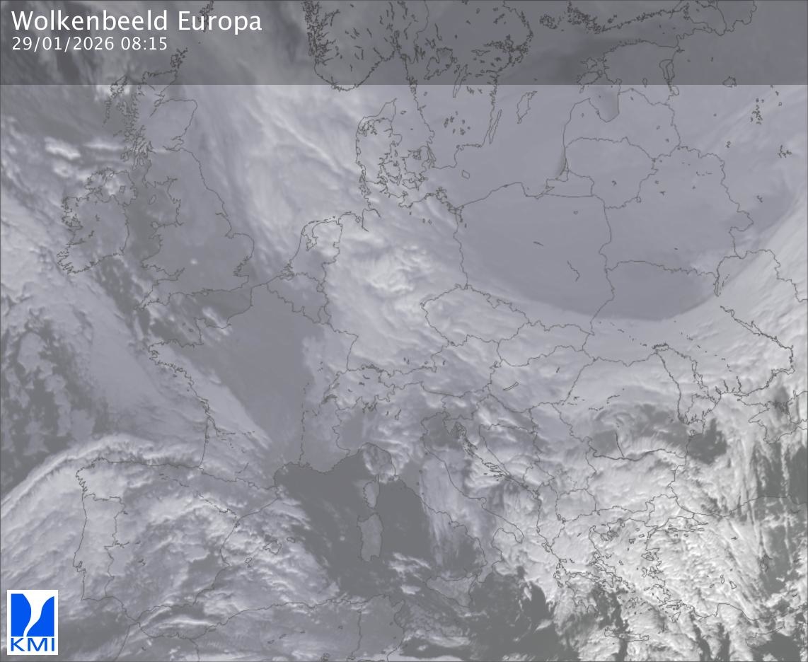 Wolkenbeelden van Europa: een combinatie uit het zichtbare (dag) en infrarode (nacht) spectrum.