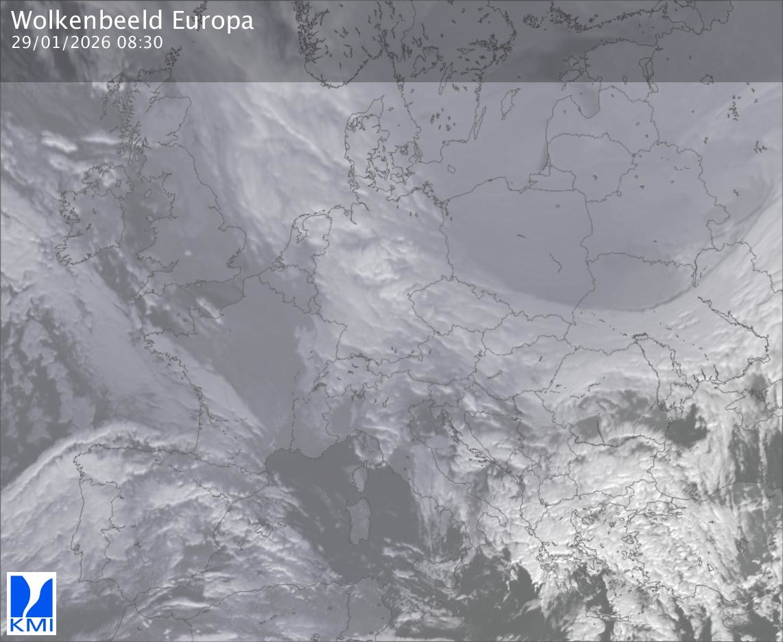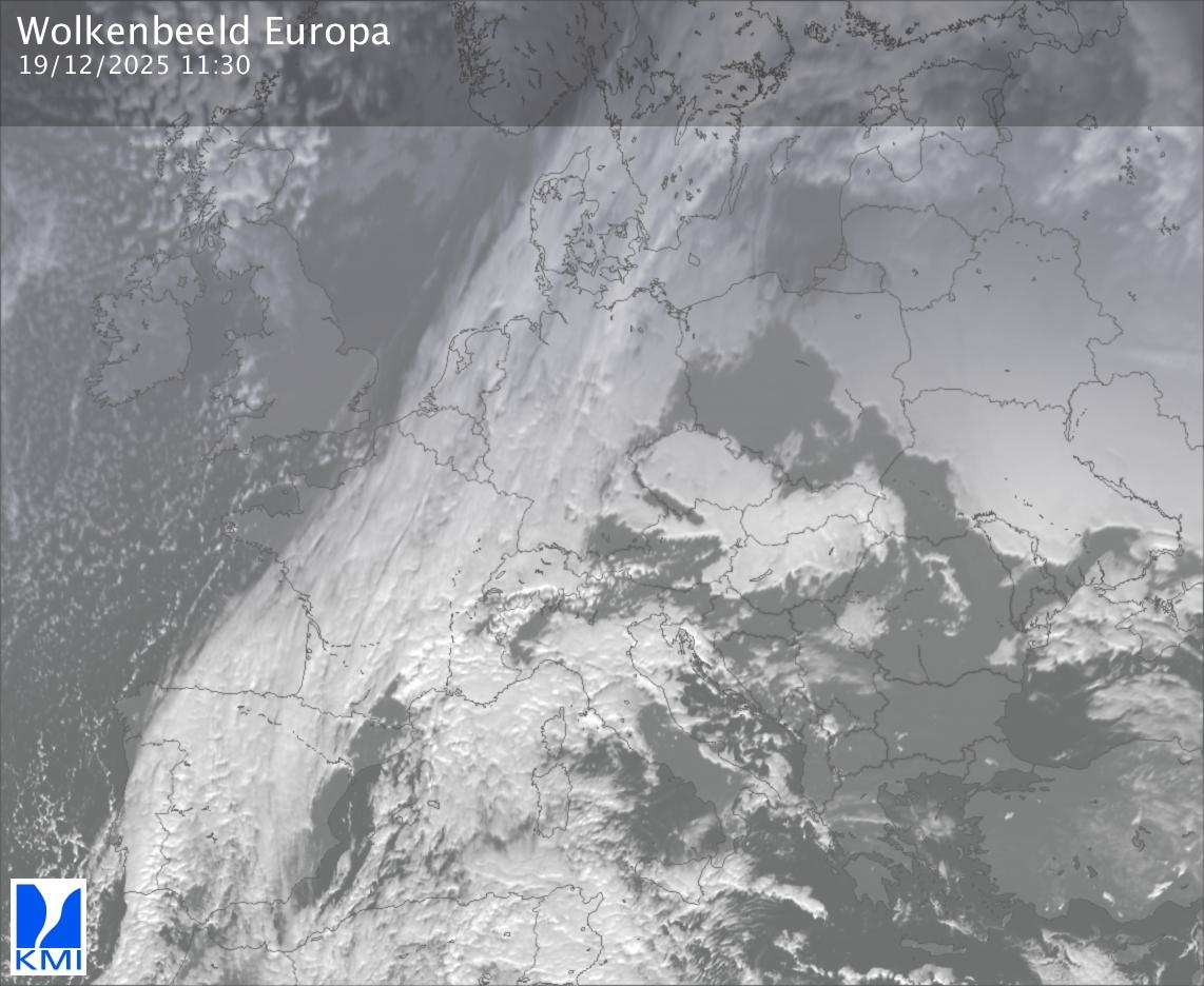 Hier ziet men wolkenbeelden die samengesteld worden door de satellietwaarnemingen uit het infrarode en het zichtbare golflengtebereik.